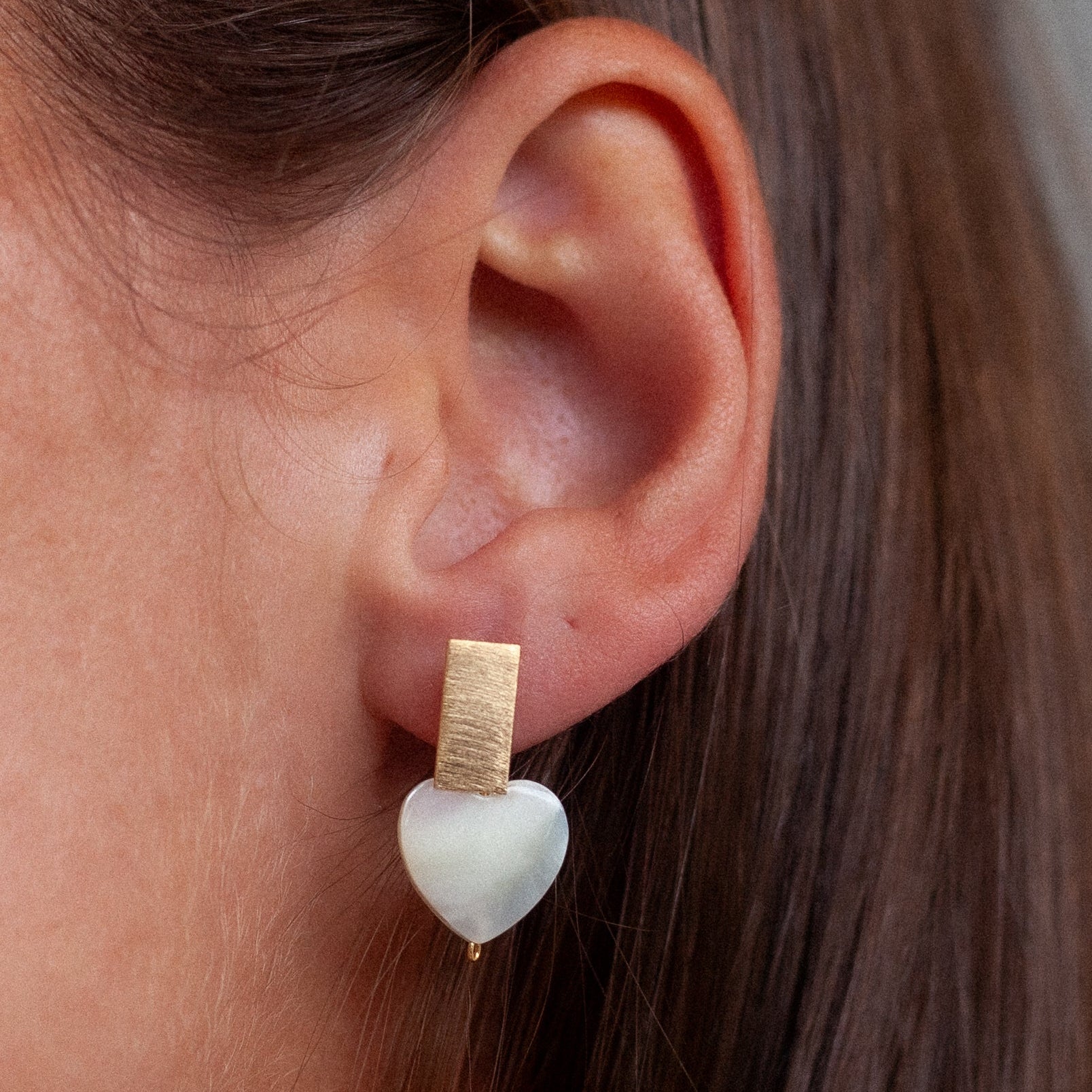 Delicate heart-shaped earrings featuring lustrous mother of pearl that catches the light with every move. These beauties have that effortless elegance that works whether you're dressing up or keeping it low-key. The iridescent shimmer adds just the right amount of sparkle without trying too hard. Perfect for layering with other pieces or wearing solo for a subtle statement. A timeless accessory that feels both modern and classic at the same time.